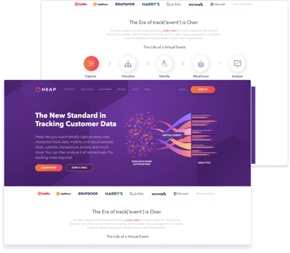 The goal of this page was help visitors understand the range of benefits Heap is offering and sign-up for a new account. This page had multiple blocks with custom functionality that were implemented successfully by our team.
